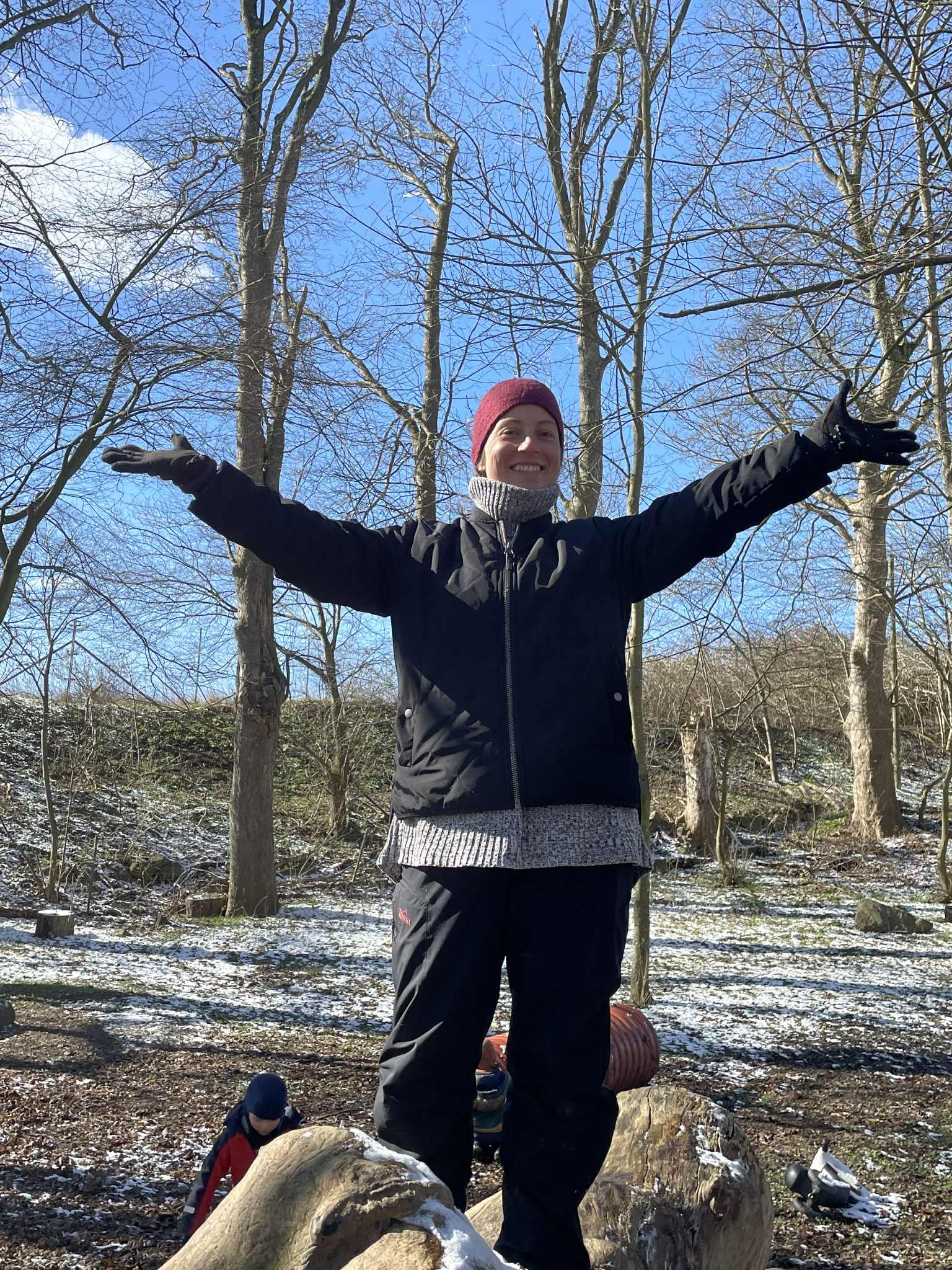 1. En sansende naturoplevelse • Børnene undersøger naturmaterialer som grene, kogler, sten, sand, blade og sne (hvis muligt). • De taler om former, farver, stemninger og historier, der gemmer sig i naturen. • Fokus på nysgerrighed, fordybelse og fælles oplevelser. 2. En levende, dialogisk eventyrfortælling • I et stemningsfuldt rum med projektioner og lyde skabes et eventyr med inspiriation fra naturen. • Børnene bidrager aktivt med idéer og figurer, som bliver flettet ind i fortællingen. • Oplevelsen styrker deres sprog, fantasi og fortælleevner. 3. Et personligt kunstværk • Hvert barn laver et eventyrbillede på lærred. • Der bruges naturmaterialer (kogler, grene, sten, mos mv.) samt maling, lim, glimmer og kreative materialer - med naturfarver. • Kunstværket må barnet selvfølgelig tage med hjem. 4. Et færdigt eventyr udgivet online • Liza renskriver eventyret efter workshoppen. • Eventyret bliver lagt op på Eventyruniversets fortællingsblog, så børnene kan genlæse, dele og genopleve fortællingen. 5. En helhedsoplevelse, der kombinerer natur, kunst og fantasi • Børnene får en unik mulighed for både at udtrykke sig kreativt, sprogligt og sansemæssigt. • Workshoppen er designet til at styrke trivsel, fællesskab og modet til at skabe.